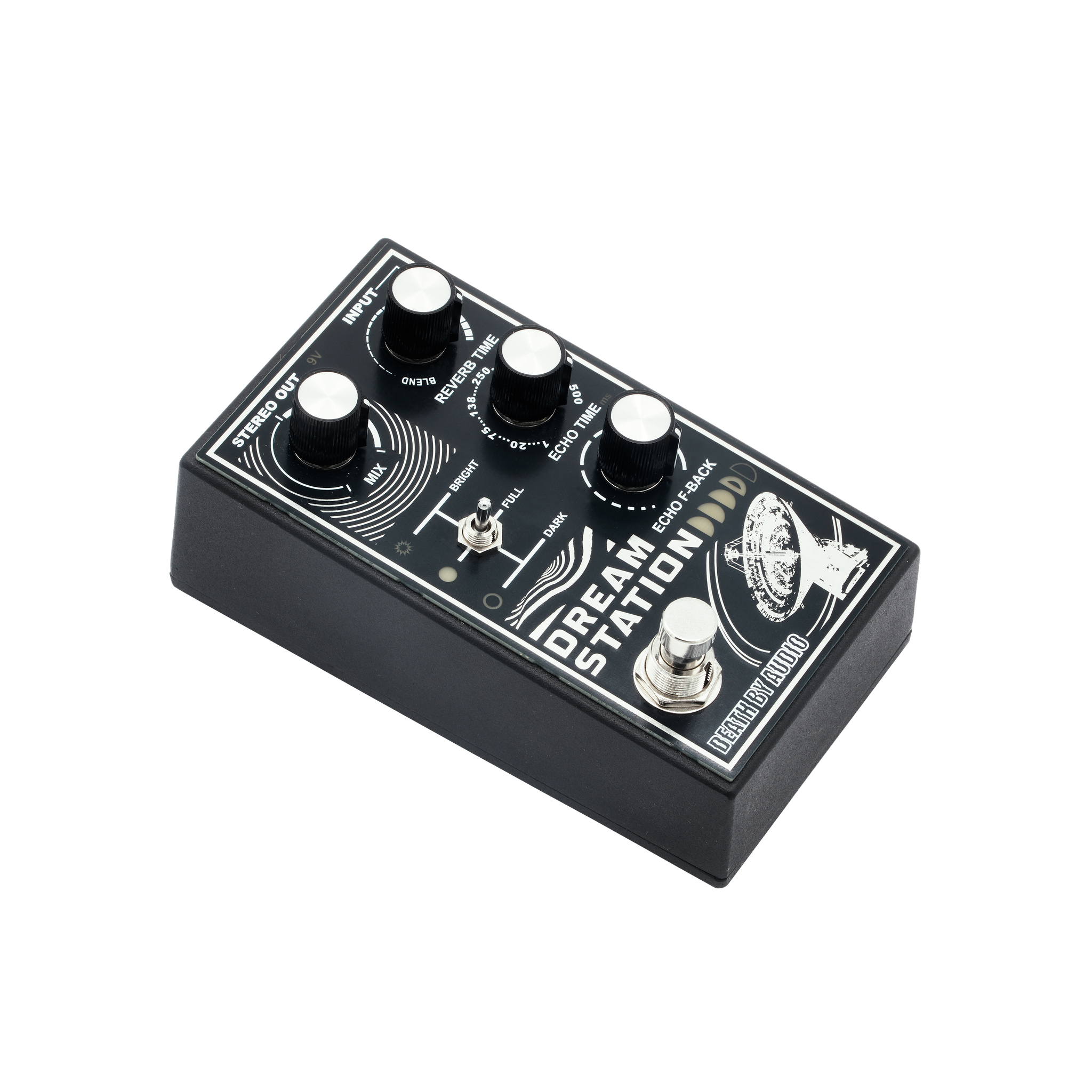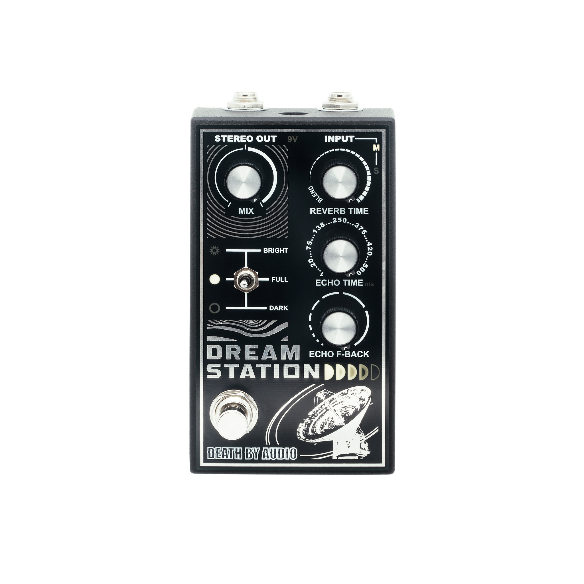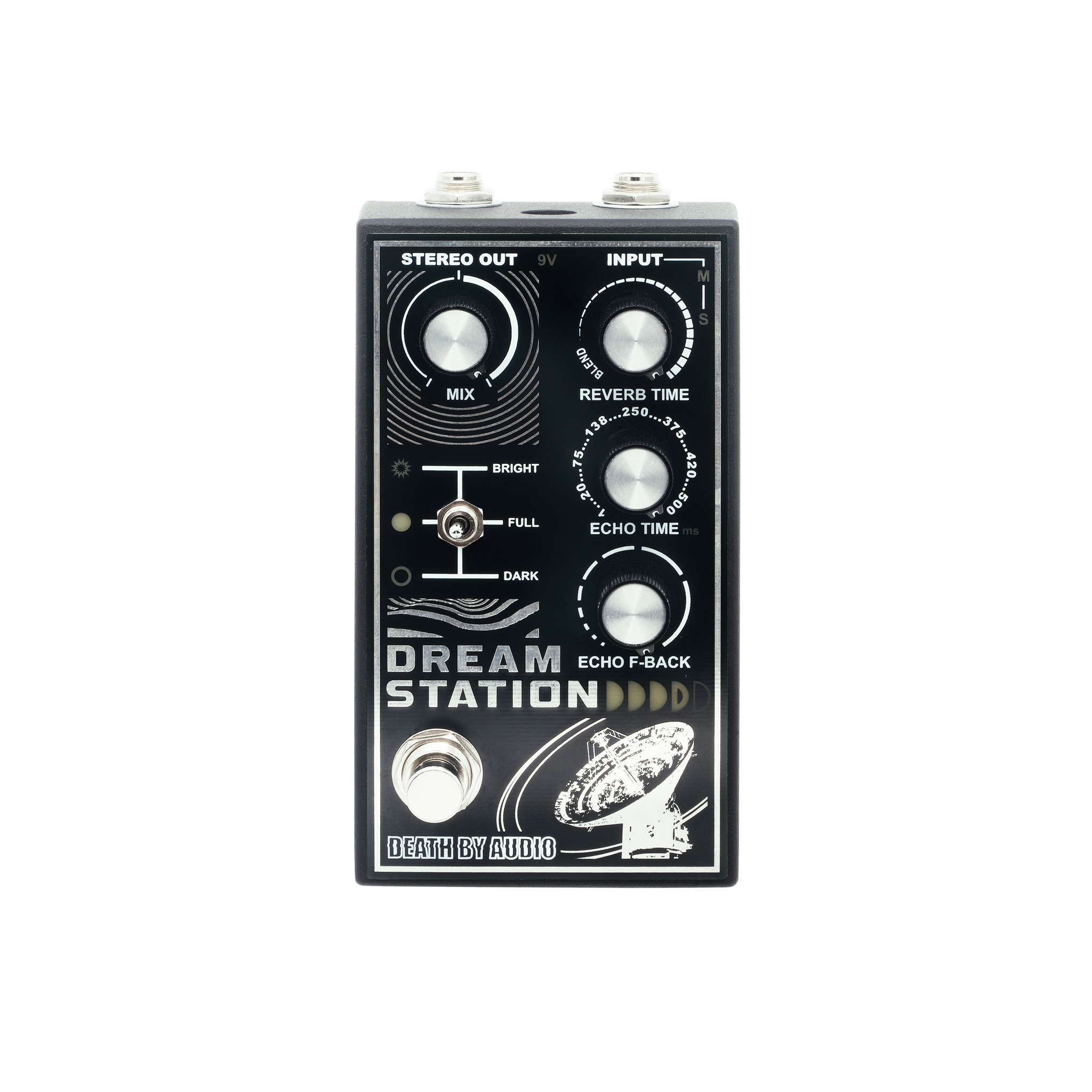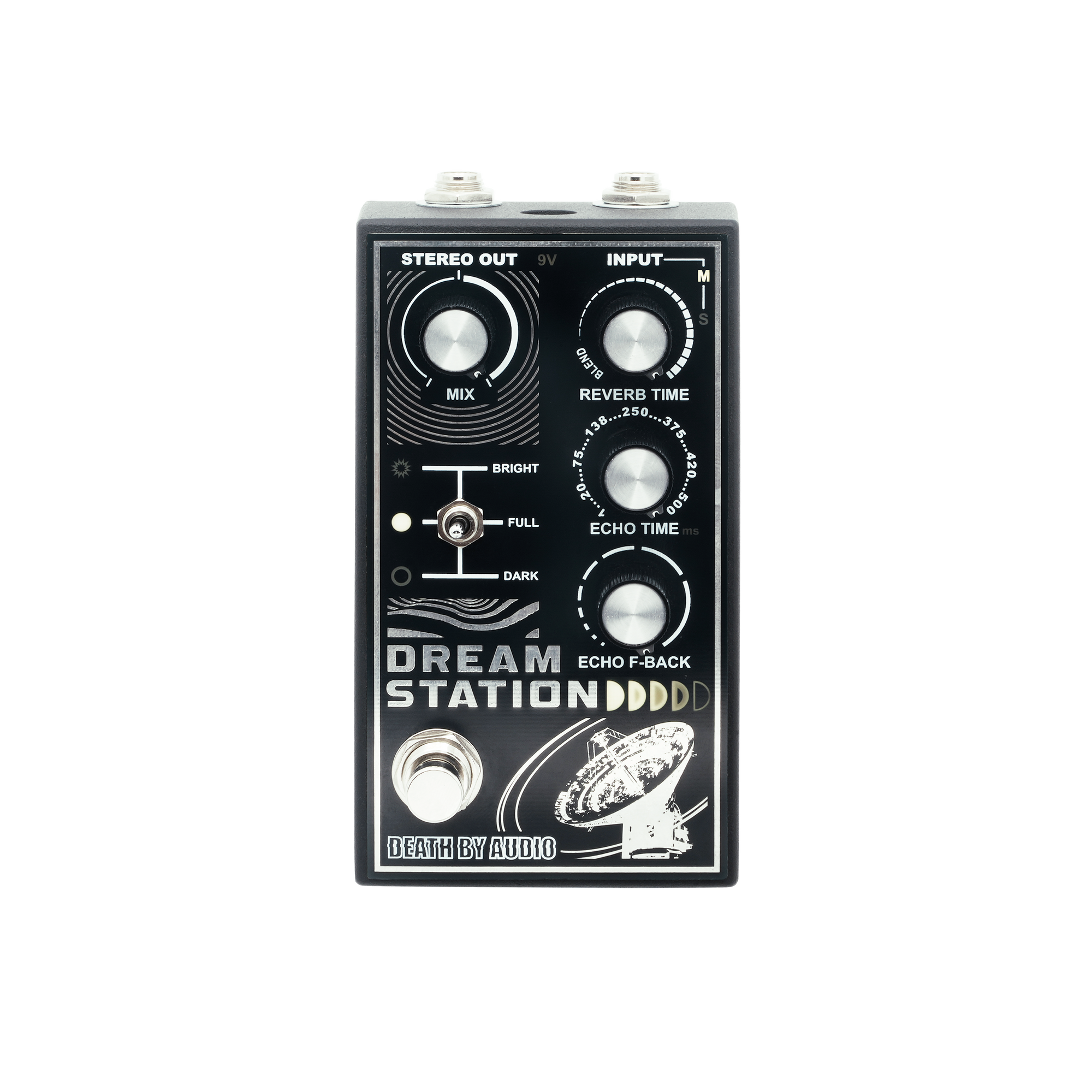 The Dream Station is like two Death By Audio pedals in one! It’s an instant mood creator, blending DBA-style reverb and delay to plunge your signal into a vivid fantasy hallucination. Three filter settings let you radically shape the tone and character of the effects, opening up a myriad of soundscapes at your fingertips and exploding your sound into super-wide stereo.