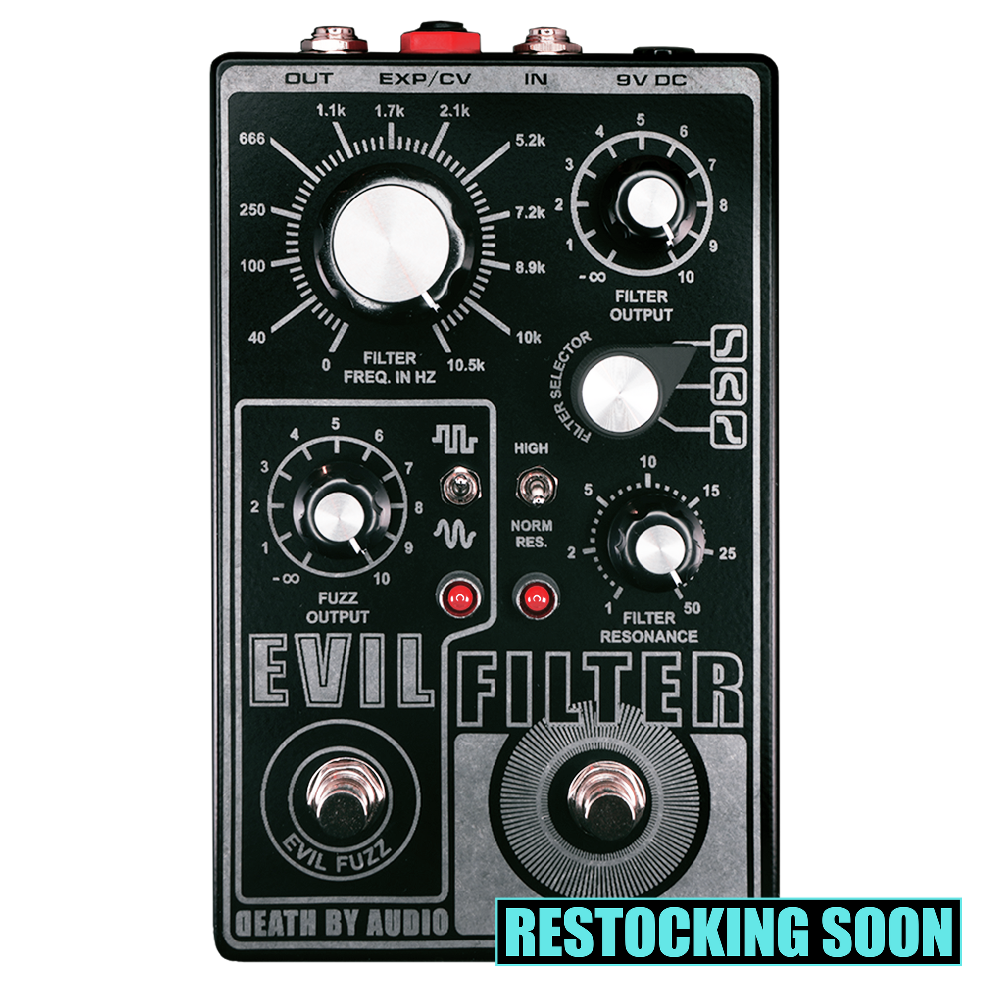 Misery loves company, so the Evil Filter is equipped with an Evil Fuzz to take the signal to a much darker dimension. The Evil Fuzz has its own footswitch so you can use it as a standalone full-on fuzz, or pair it with the Evil Filter to push the medical-grade IC past its limit to develop potent new sonic concoctions to push your sound to the limit.