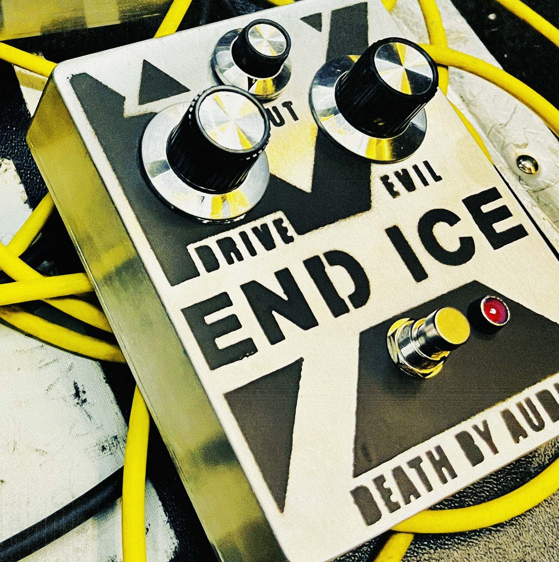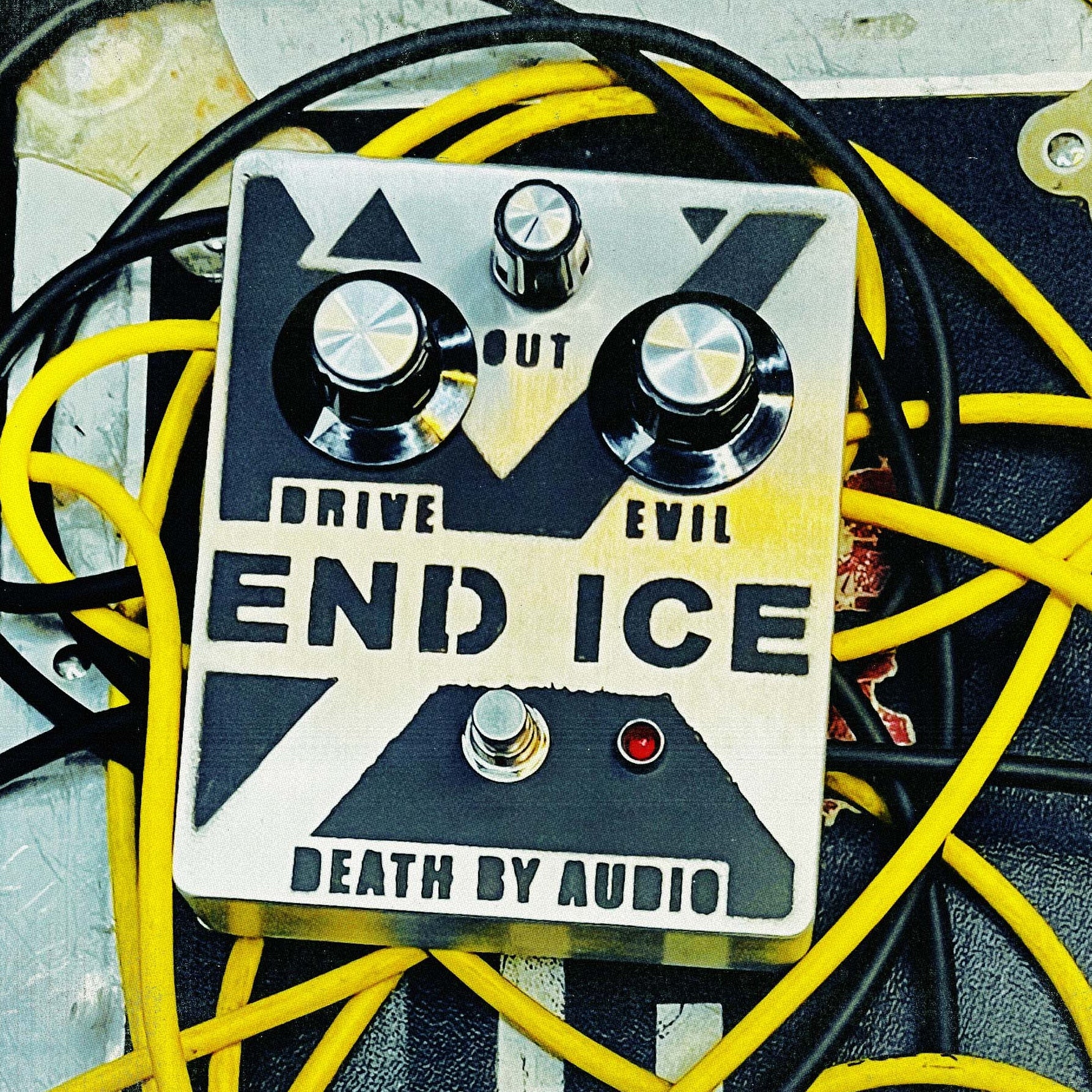 END ICE is an extreme octave fuzz crusher perfect for destroying your bass, guitar, synthesizer, or occupying force. A distant and over-the-top cousin of the Bass War, this vintage-style octafuzz and searing notch filter has been tuned to bring a crisp and shattering “FUCK FASCISM” sound to any amplifier and speaker system.